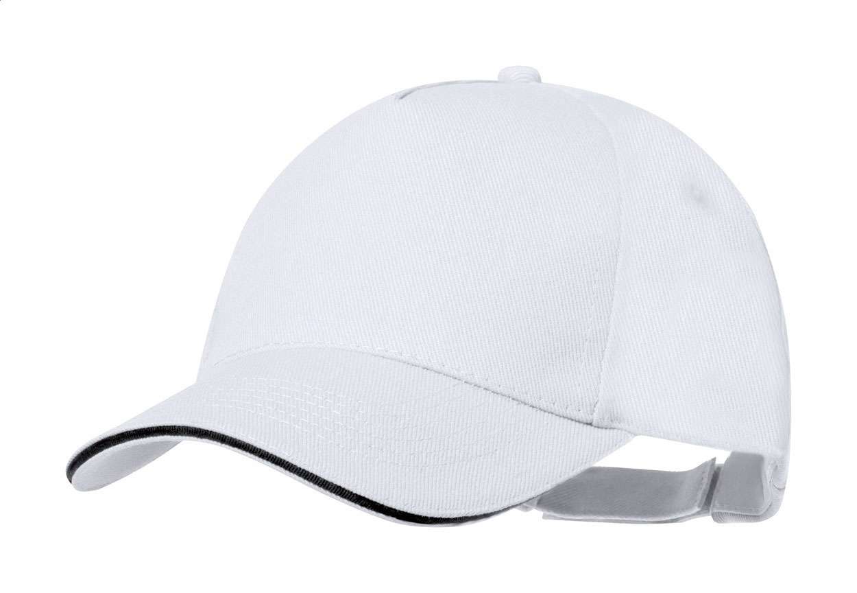 Şapcă de baseball, din poliester RPET, cu 5 panouri şi închidere cu velcro.