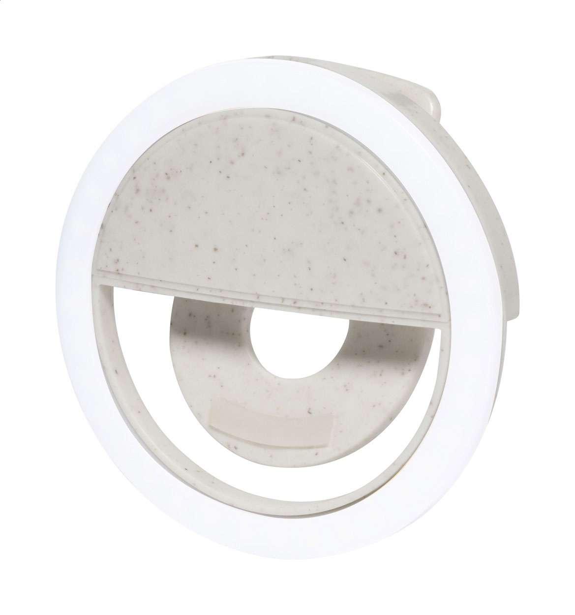 Inel pentru selfie, din plastic ecologic din paie de grâu, cu 36 LED-uri, pentru telefoane mobile. Cu 3 niveluri de luminozitate reglabile și baterie reîncărcabilă încorporată. Inclusiv cablu de încărcare USB.
