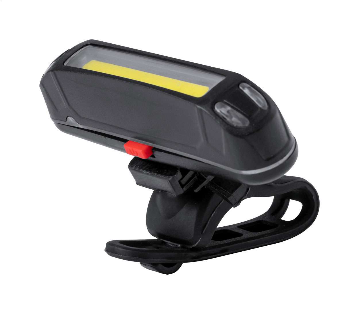 Lumină pentru bicicletă, din plastic ABS, cu proiector COB de mare putere (lumină albă și roșie), baterie reîncărcabilă USB încorporată (350 mAh) și curea elastică. Cu moduri de lumină fixă și intermitentă. Inclusiv cablu de încărcare USB. Nu le vindem în următoarele țări: DE, AT, CH.