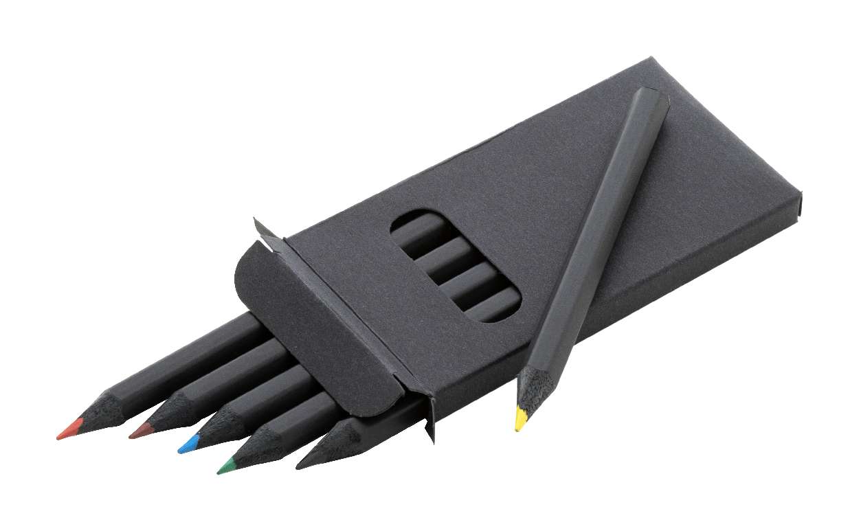 Set de 6 buc. creioane colorate, din lemn negru, în cutie de hârtie neagră.