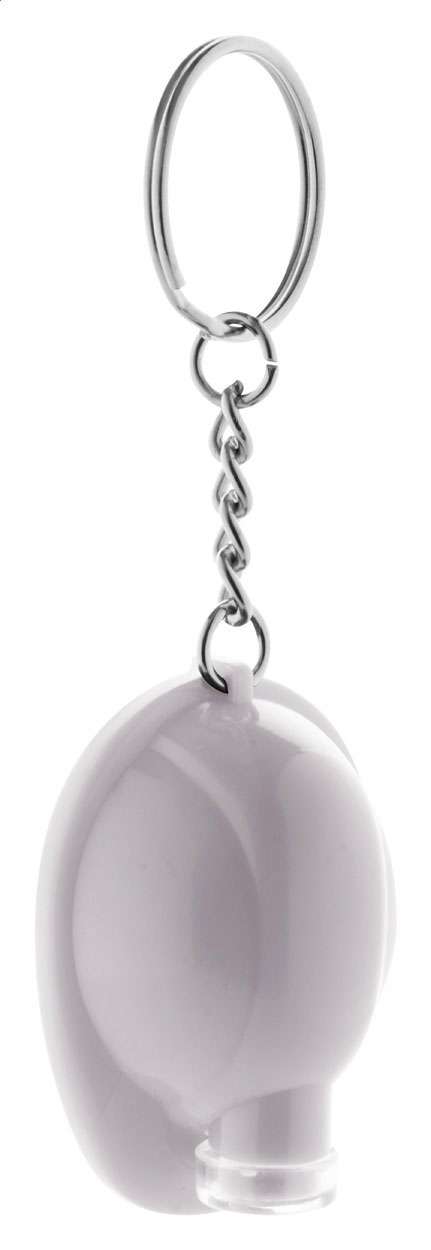 Breloc în formă de cască de siguranță, din plastic, cu lumină LED. Cu baterie tip ceas.