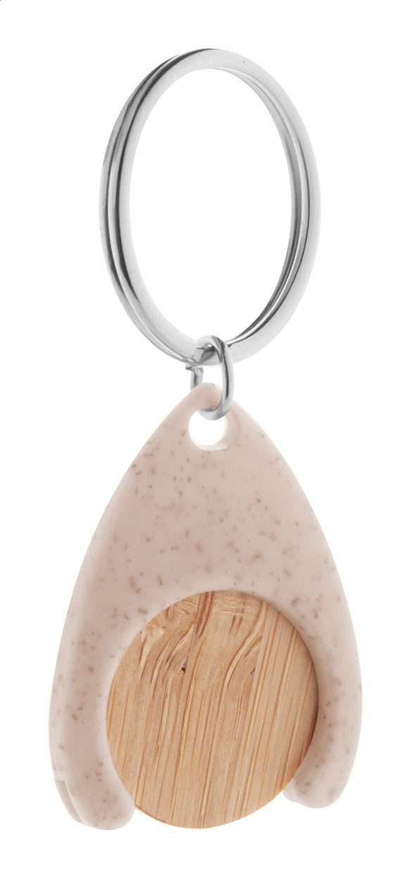 Monedă pentru cărucior de cumpărături, din bambus cu breloc din plastic ecologic din paie de grâu. Dimensiune fisă: ø25×2 mm.