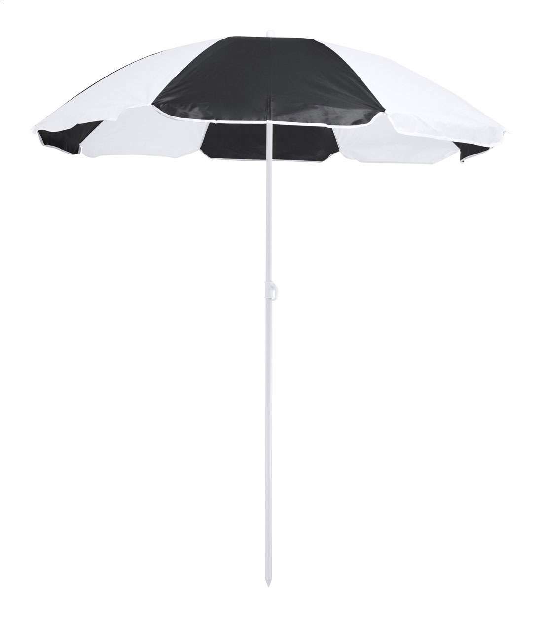 Umbrelă de plajă în două tonuri, cu cadru metalic reglabil pe înălțime și 8 panouri din nailon. Cu geantă de transport din PVC.