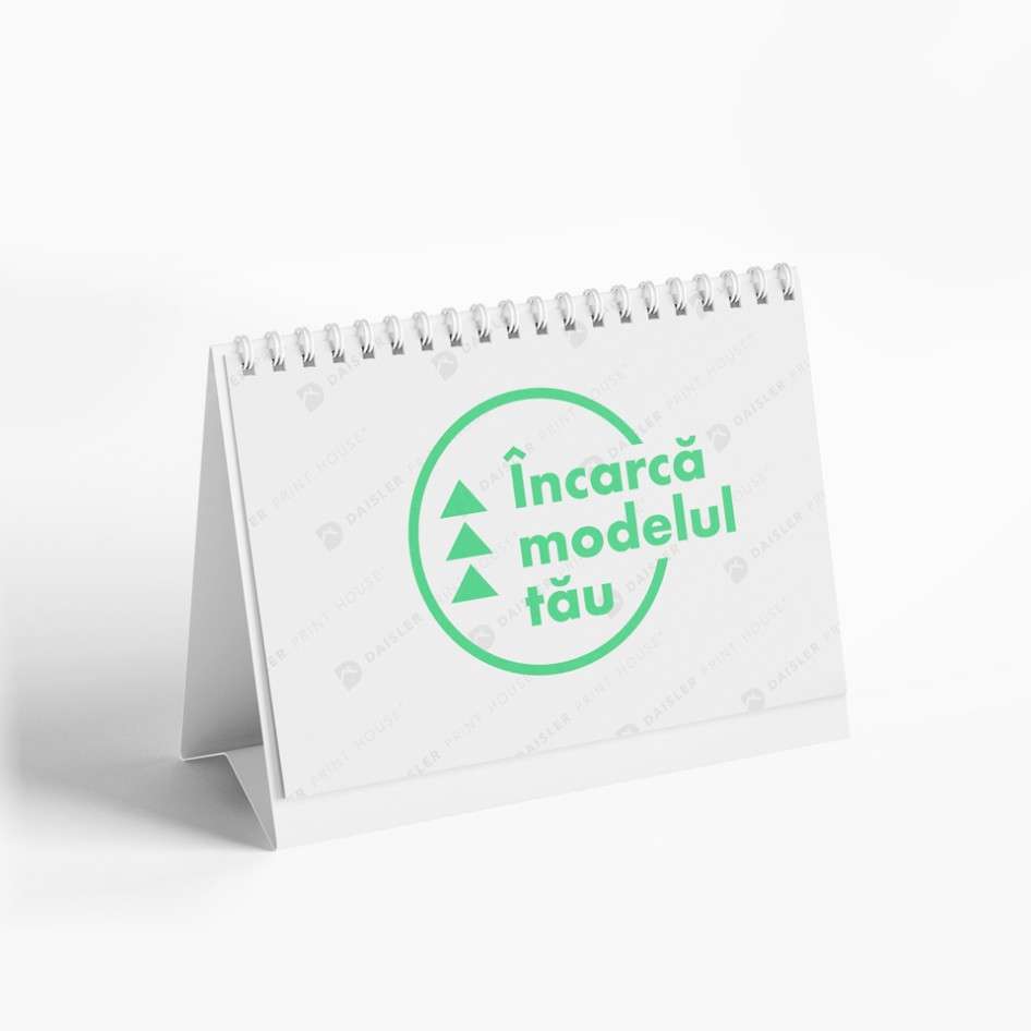Calendar de birou în multiple dimensiuni, tipărit pe carton 200–350 g, cu opțiuni de hârtie crețată, texturată sau reciclată. Ideal pentru birou și promovare corporate.