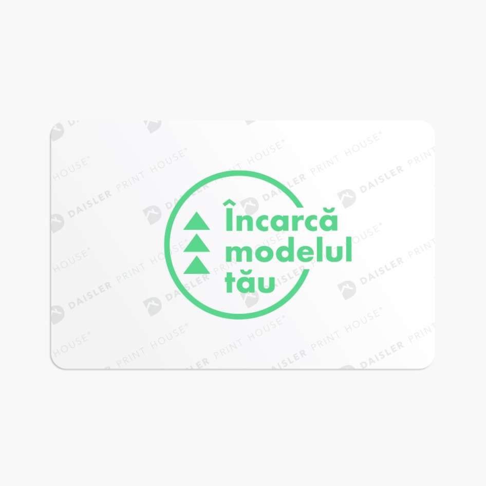 Card din PVC rezistent, tipărit prin tehnologie UV cu suprafață mată la atingere. Ideal pentru legitimații, carduri de acces sau fidelizare.