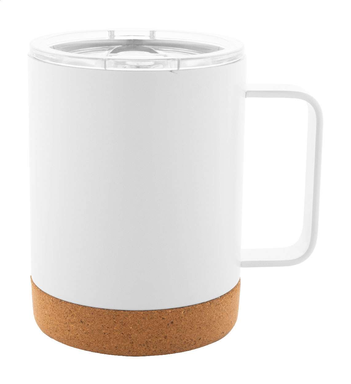 Cană termică, cu perete dublu, din oțel inoxidabil, cu capac de băut și bază din plută naturală, 330 ml. În cutie de hârtie kraft.