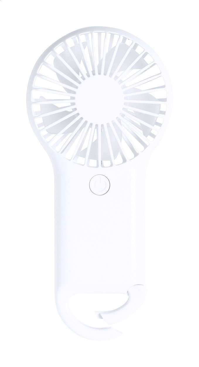 Ventilator electric, de mână, din plastic ABS. Funcționează cu 3 baterii AAA, fără baterie.