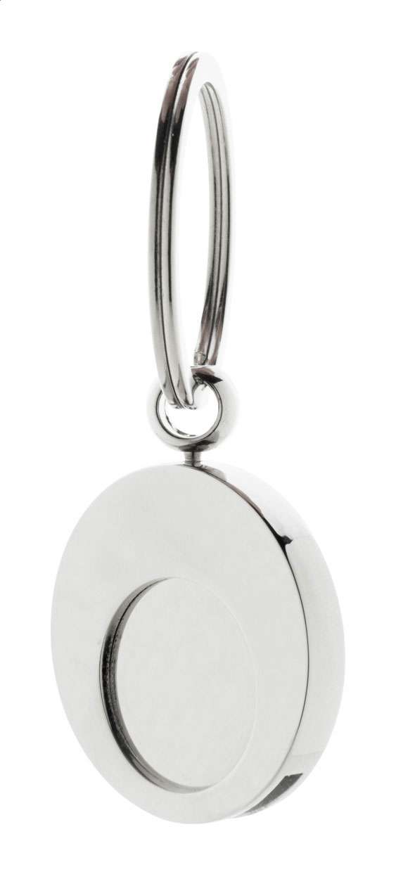 Breloc metalic, de formă rotundă, cu monedă cărucior pentru cumpărături. În cutie de hârtie kraft.