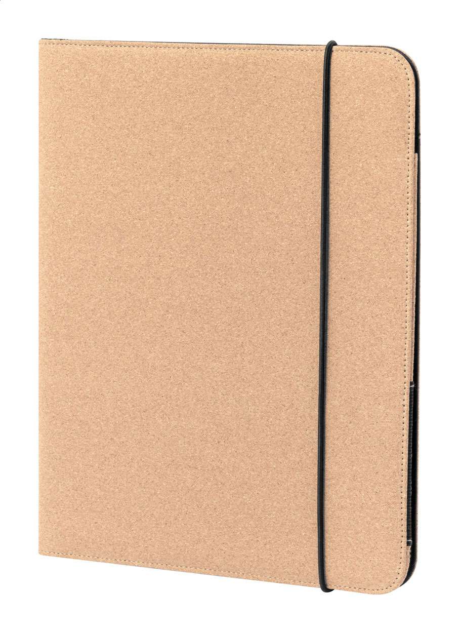 Dosar pentru documente, din plută naturală, cu blocnotes cu 20 de foi dictando și mai multe buzunare interioare pentru organizare.