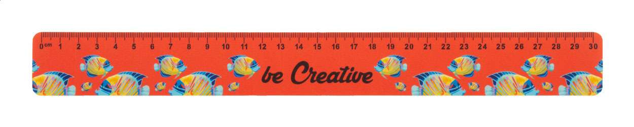 Riglă flexibilă, din plastic, de 30 cm, cu grafică personalizată. Prețul include imprimarea UV LED pe o parte. MOQ: 100 buc.