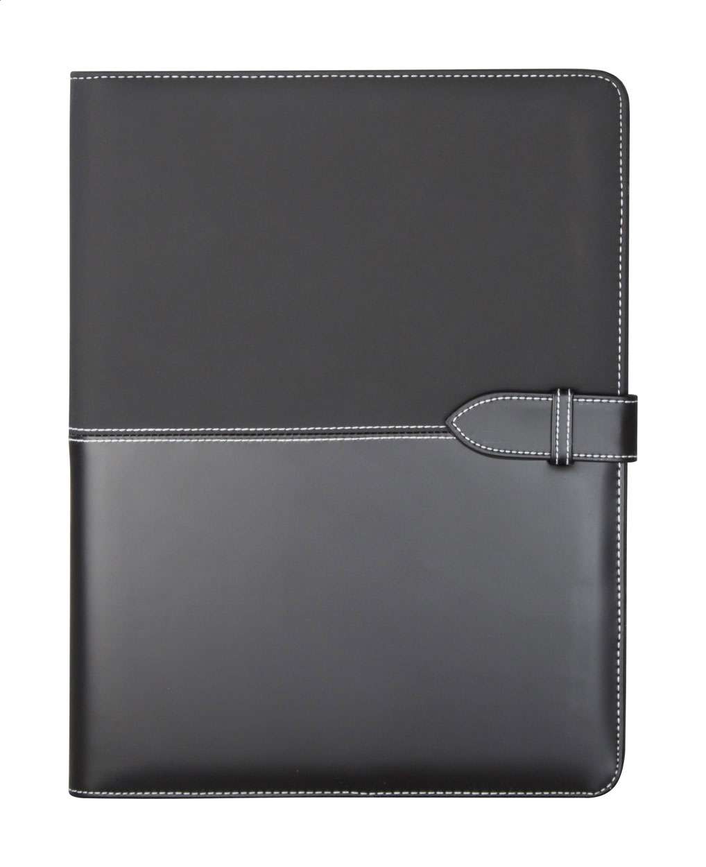 Mapă documente A4 din înlocuitor piele, cu 20 file dictando, suport pentru pix şi suport pentru cărţi de vizită.