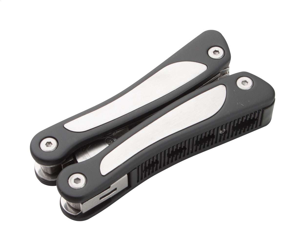 Set multifunctional cu 9 functii:cleste,pila,3 surubelnite,2 cutite diferite,deschizator conserva si miniferastrau.