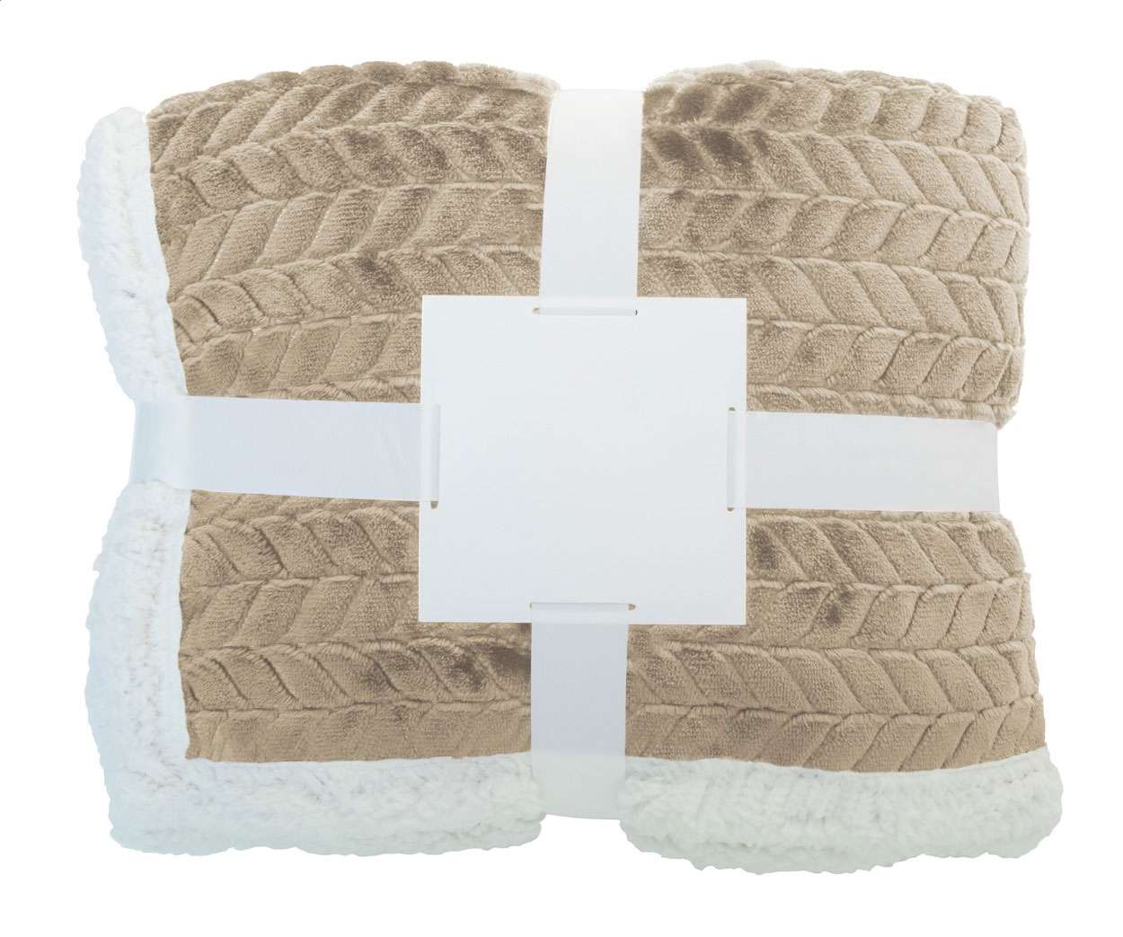 Pătură RPET, cu două straturi, cu model jacquard. Cu 240 g/m² RPET flanel fleece și căptușeală reversibilă 210 g/m² RPET sherpa fleece. Prins în panglică și carton card din hârtie imprimabilă.