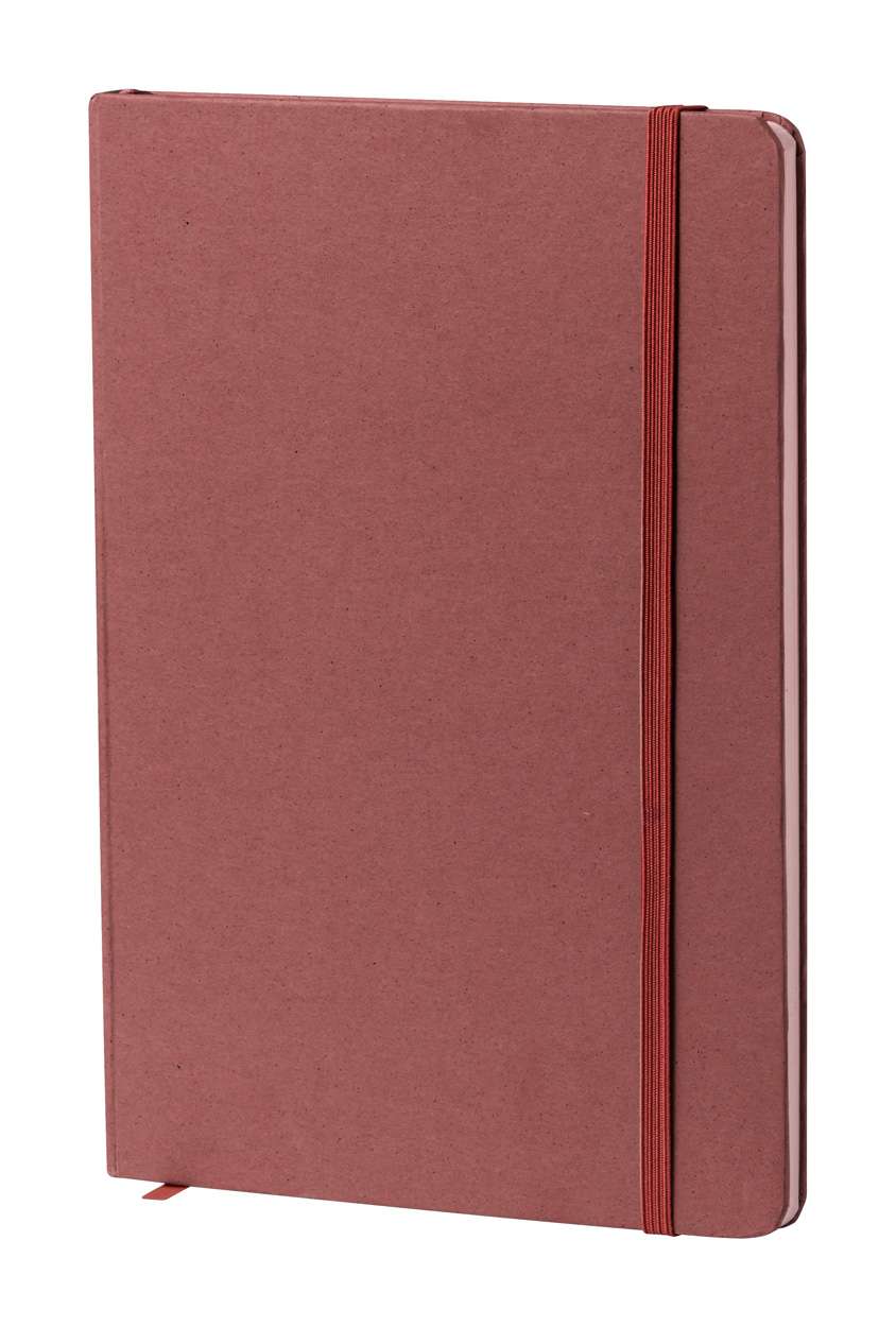 Agendă cu copertă din hârtie de fructe, cu 80 de foi dictando din hârtie reciclată. Cu marcaj și curea de cauciuc. Dimensiune A5.