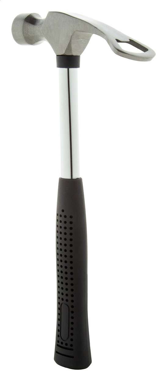 Ciocan din oțel carbon cu deschizător de sticle și mâner de cauciuc.