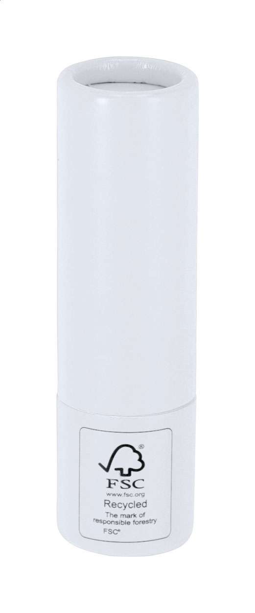 Balsam de buze, cu aromă de vanilie, în suport de hârtie reciclată, cu protecție SPF15.