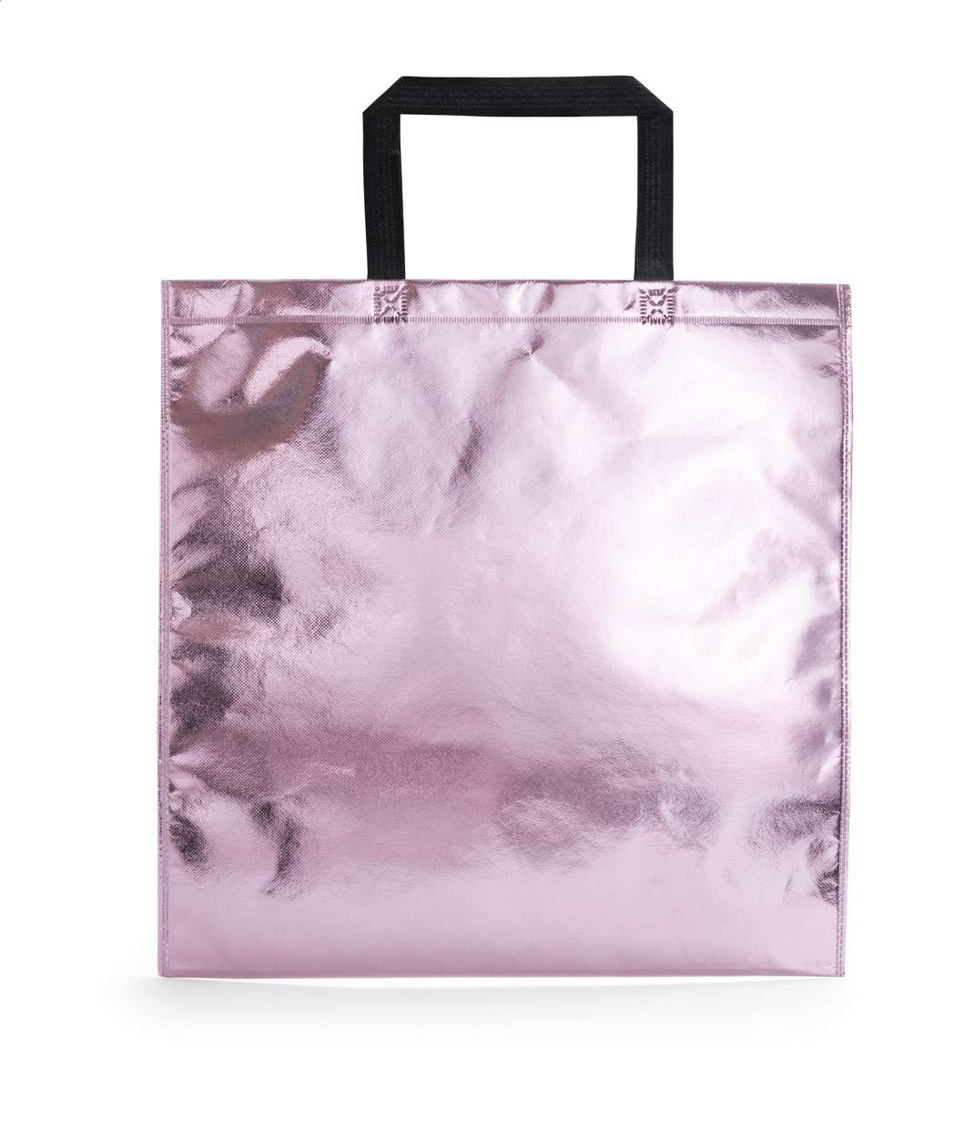 Sacoșă de cumpărături din material nețesut, culoare metalizată, cu mânere medii.