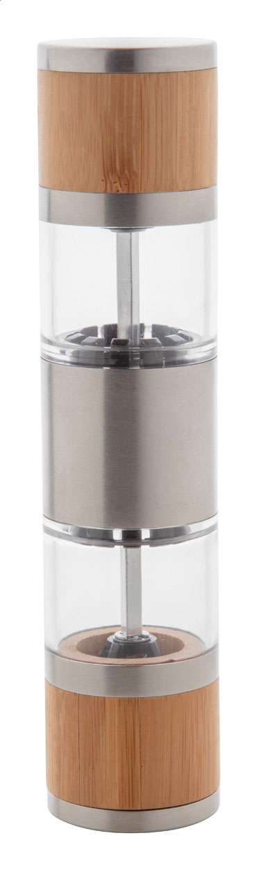 Râșniță pentru sare și piper, din bambus și oțel inoxidabil, cu mecanism ceramic.