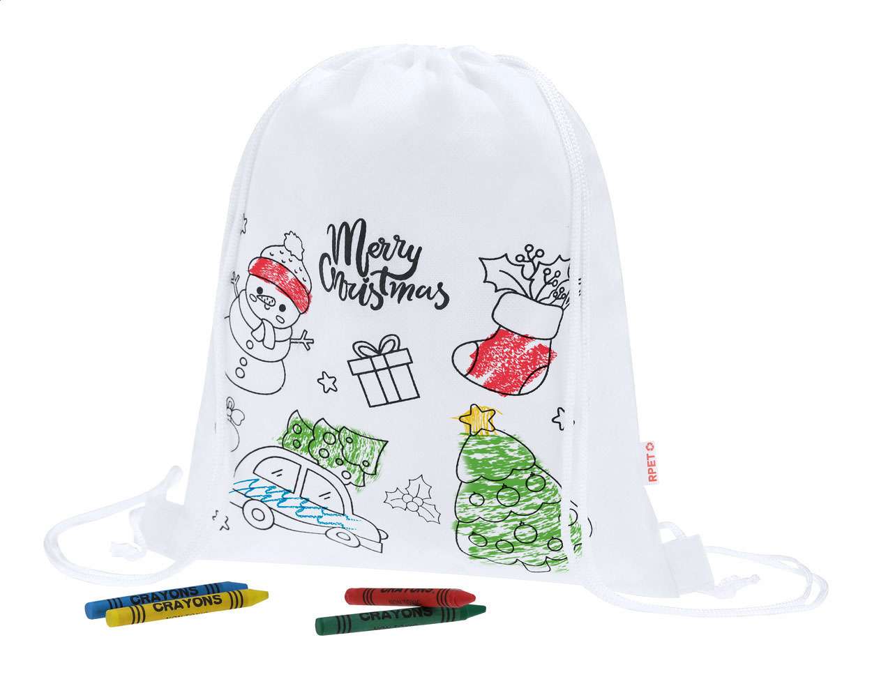 Rucsac din material nețesut, cu șnur, de colorat, cu design de Crăciun, cu 4 buc creioane cerate.