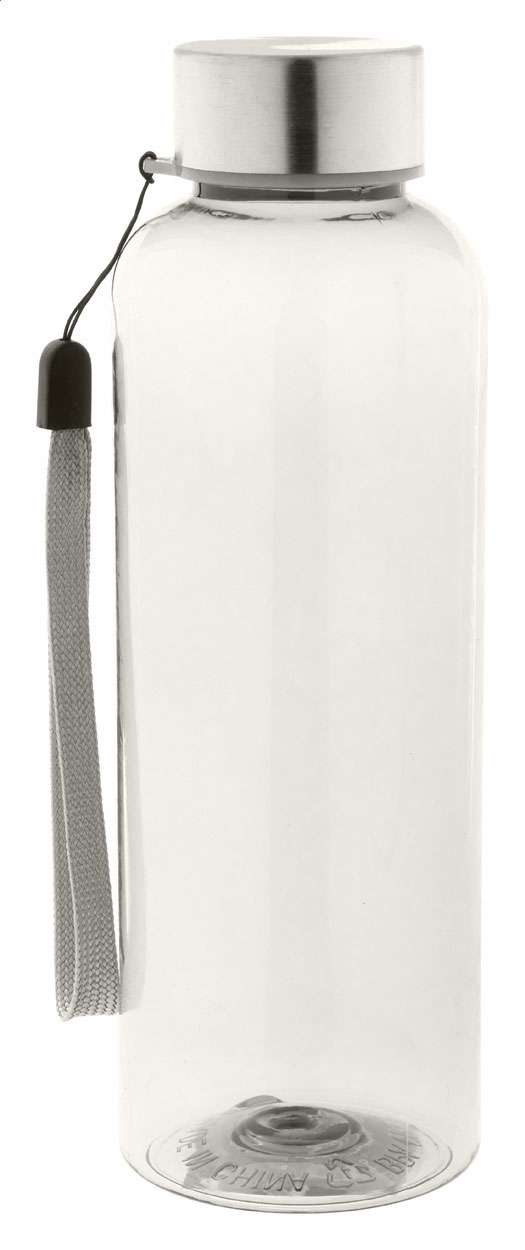 Sticlă RPET, cu capac din oțel inoxidabil și curea de transport, 500 ml. Fără BPA. Nu este potrivită pentru băuturi carbogazoase.