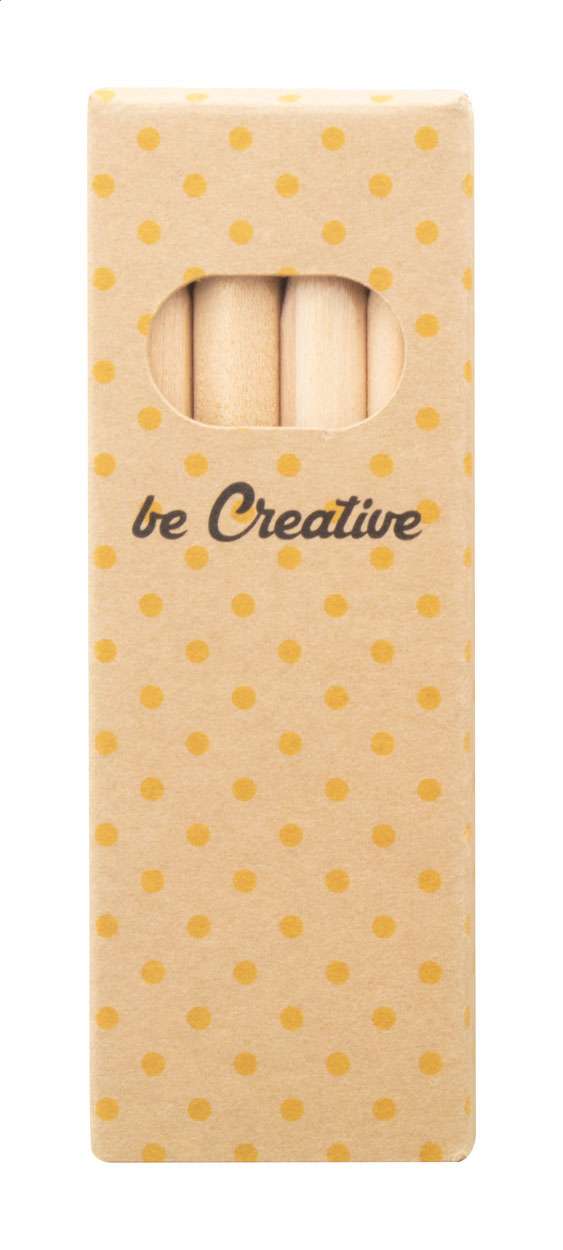Creioane colorate din lemn (4 buc) în cutie de hârtie kraft personalizată color. Prețul include tipărirea digitală. MOQ: 100 buc.