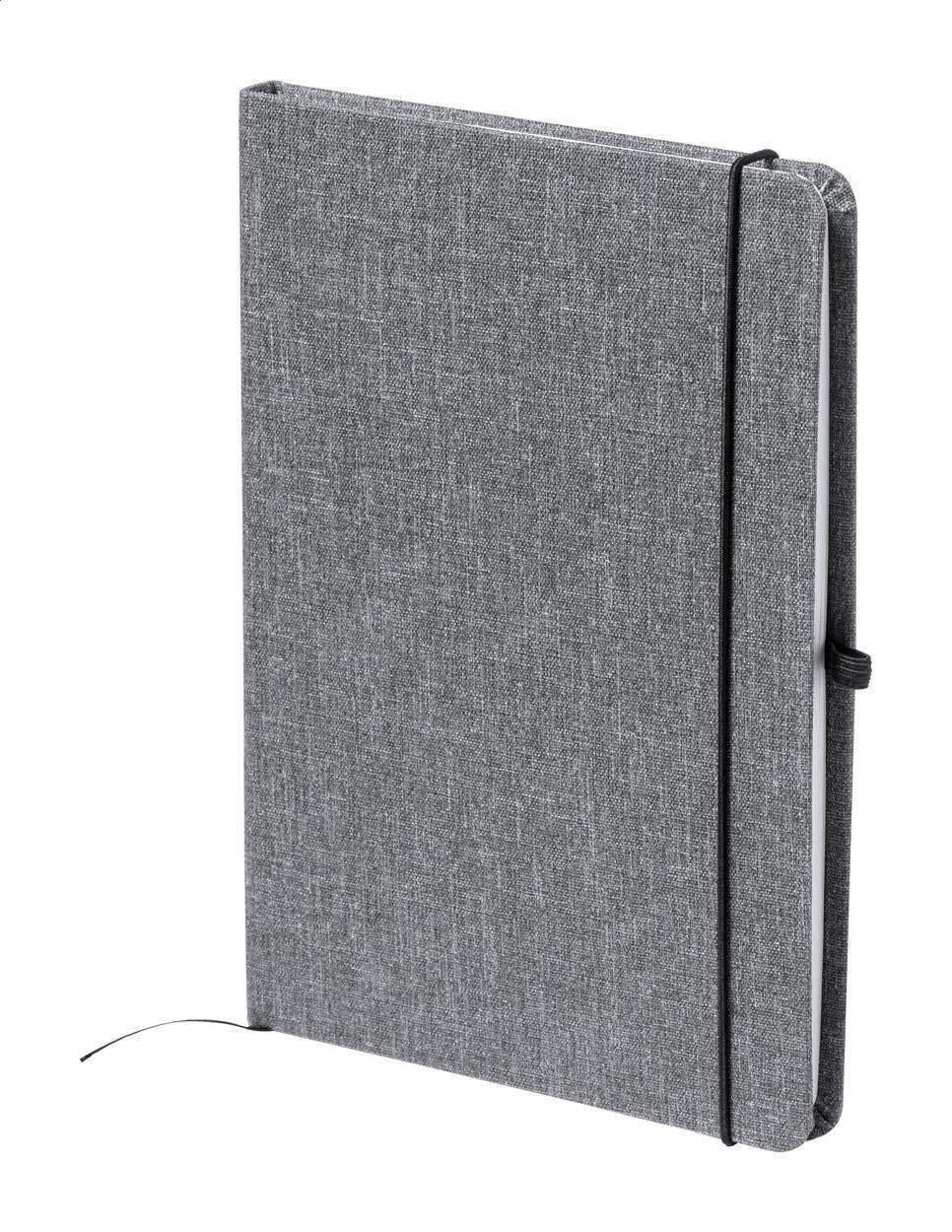 Agendă cu copertă din poliester 600D RPET cu 100 de foi dictando, semn de carte și curea de cauciuc. Dimensiune A5.