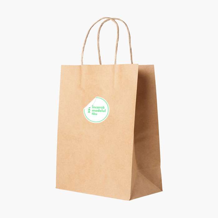 Pungă kraft rezistentă, disponibilă în diverse dimensiuni. Se poate folosi simplă sau personaliza prin aplicarea unui sticker comandat separat.