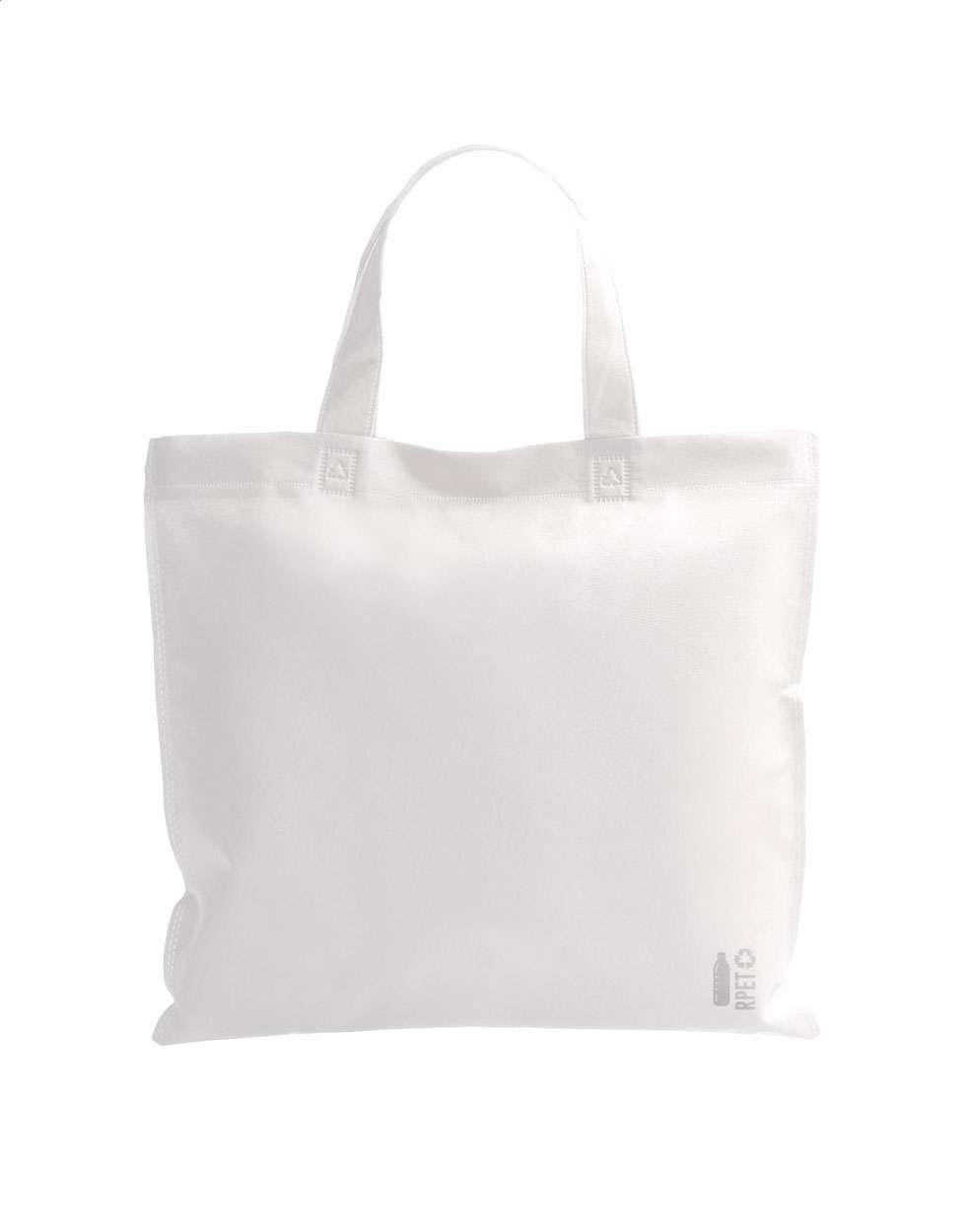 Sacoșă de cumpărături din RPET nețesut, cu mânere de lungime medie, 70 g/m². Cu etichetă distinctivă RPET.