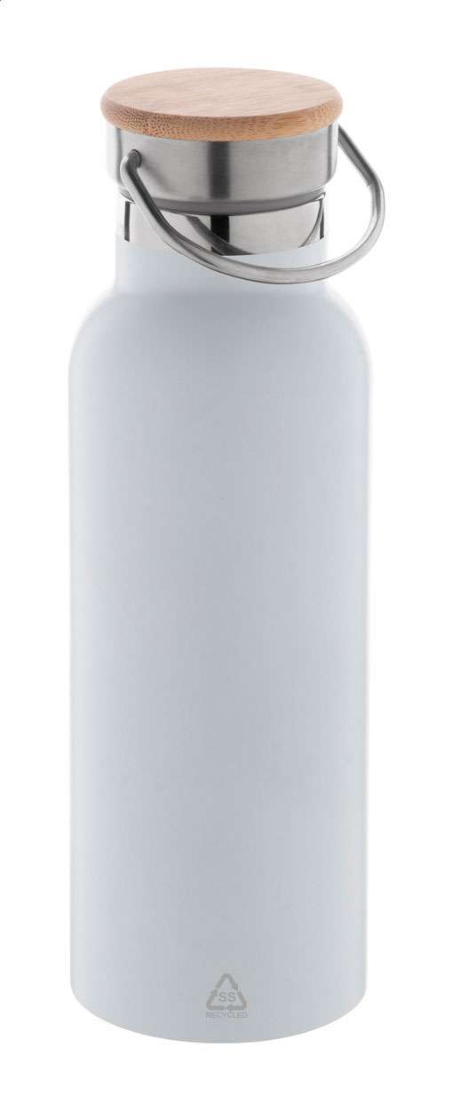 Termos din oțel inoxidabil reciclat, cu perete dublu, cu capac de transport din bambus. 500 ml.