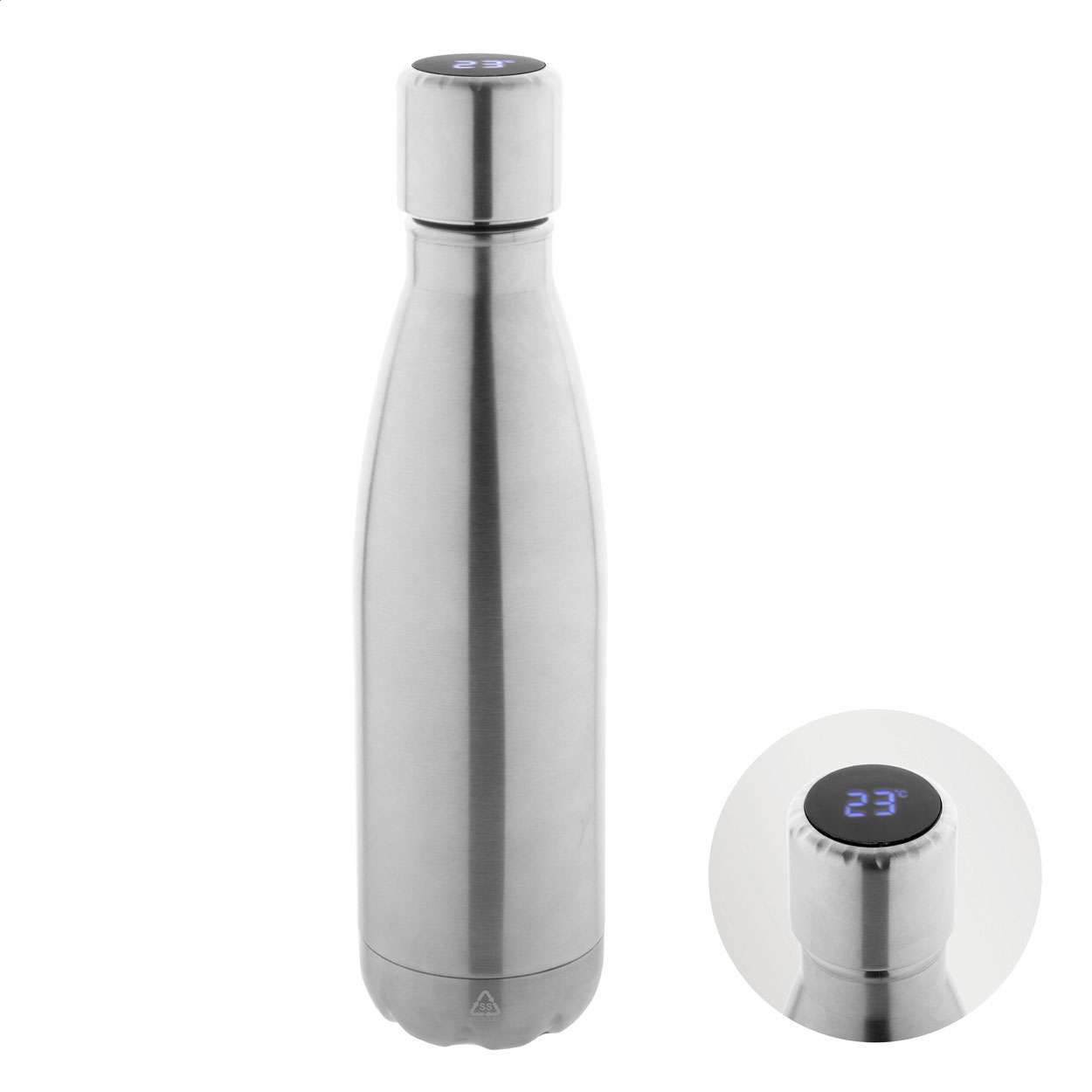 Termos din oțel inoxidabil reciclat, cu perete dublu, cu termometru tactil LED pe capac. 500 ml. Cu baterie reîncărcabilă USB încorporată. Inclusiv cablu de încărcare USB.