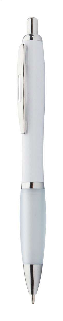 Pix din plastic ABS reciclat, cu cilindru alb, mâner colorat și părți cromate. Cu mină albastră.