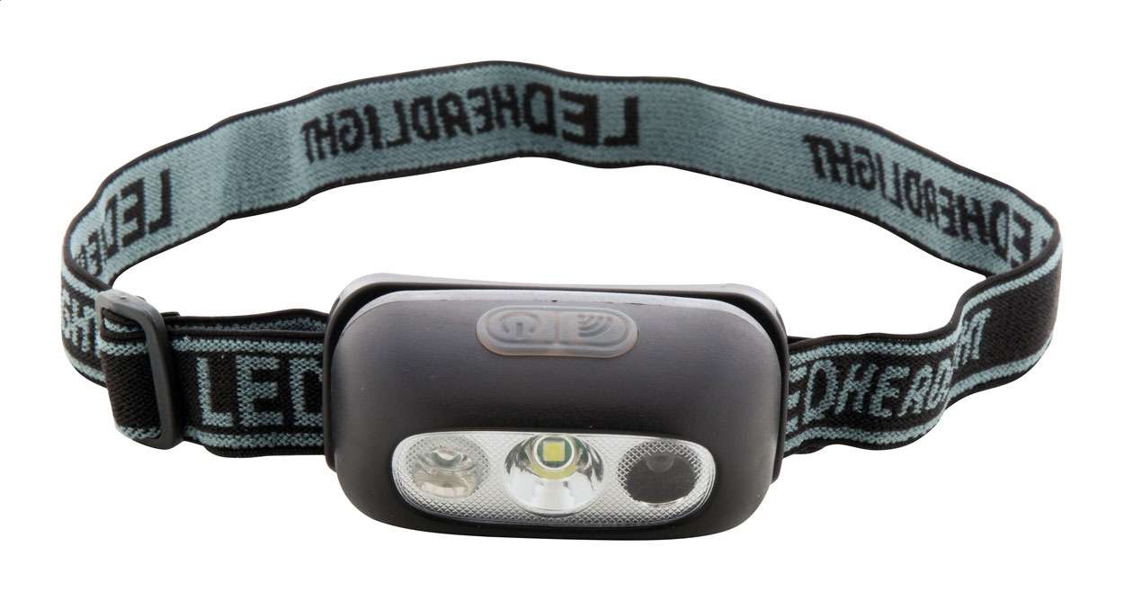 Lanterna frontală, din plastic, cu baterie reîncărcabilă USB încorporată (400 mAh) și curea reglabilă. Cu lumină COB de mare putere și senzori duali de mișcare. Cu moduri de lumină ridicat, scăzut și sensibil la mișcare. Inclusiv cablu de încărcare USB.