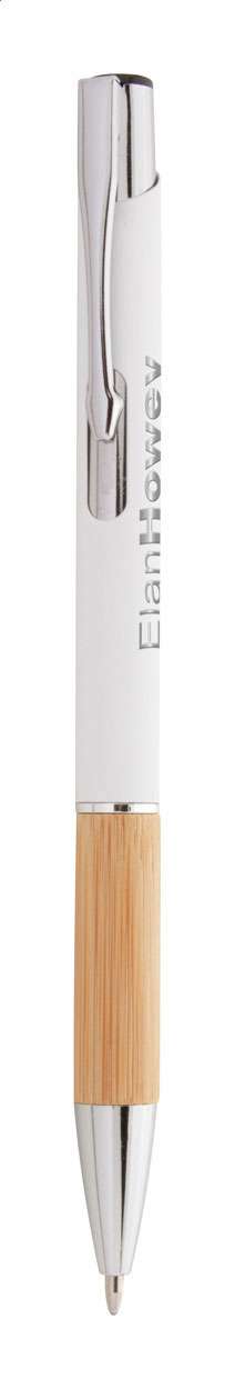Pix din aluminiu, cu corp din bambus, finisaj cauciucat și mină albastră. Cu acoperire specială pentru gravarea laser în oglindă.