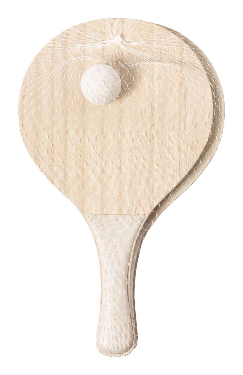 Set tenis de plajă cu 2 rachete și o minge, din lemn și plastic ecologic din paie de grâu.
