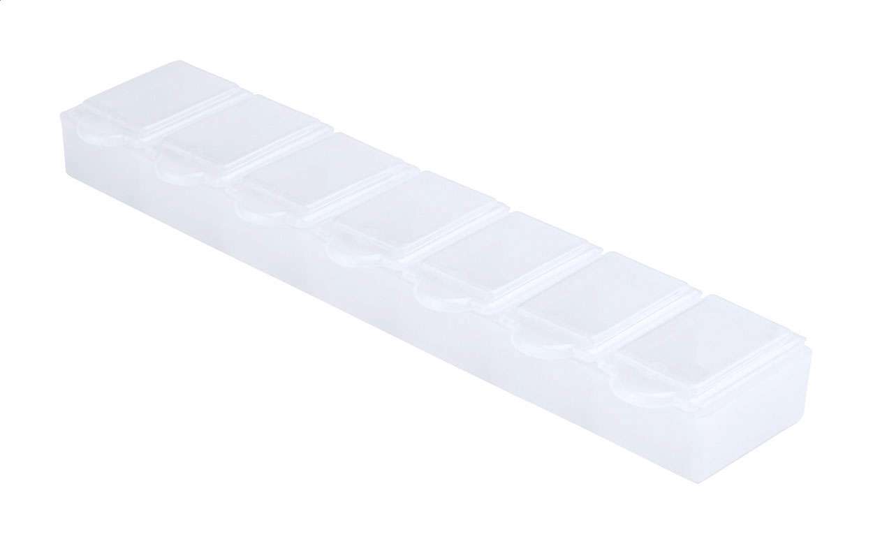 Cutie pentru medicamente, cu 7 compartimente. Din plastic.