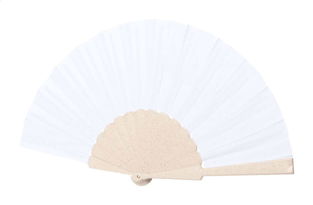 Evantai din poliester PET reciclat și plastic ecologic din fibră de bambus. În cutie de hârtie kraft.