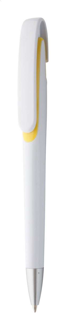 Pix din plastic, corp alb, vârf argintiu. Mină albastră.