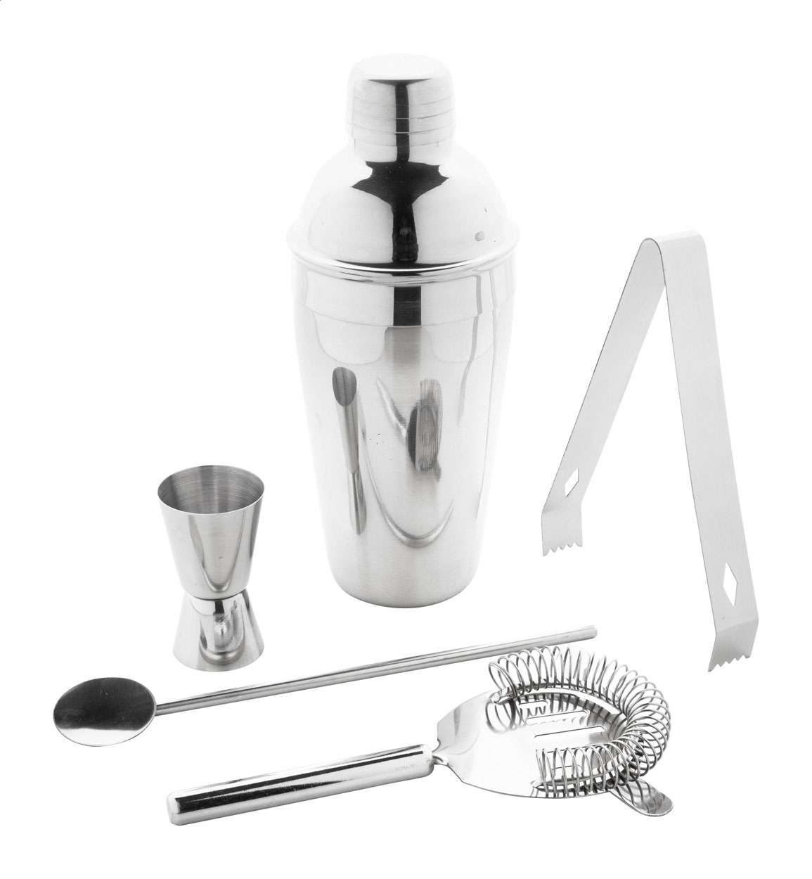 Set de cocktail, din 5 buc, din oțel inoxidabil în cutie de hârtie kraft.Inclusiv: shaker de cocktail (550 ml), jigger, strecurătoare, lingură de bar și clește pentru gheață.