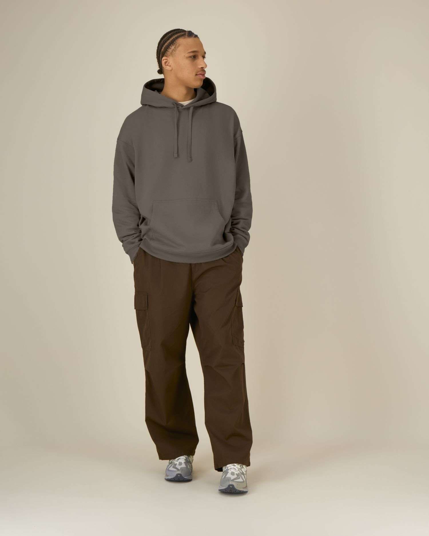 Hanorac cu glugă și șnur plat. Cusături duble, buzunar frontal și detalii brodate. Stil modern și comod.