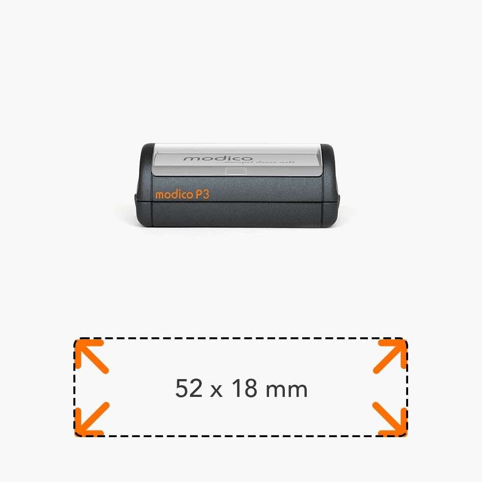 Ștampila Modico P3 are o amprentă de 52x18 mm, ceea ce o face potrivită pentru texte detaliate, precum date complete de firmă, adrese lungi, detalii fiscale sau informații administrative care necesită spațiu suplimentar.