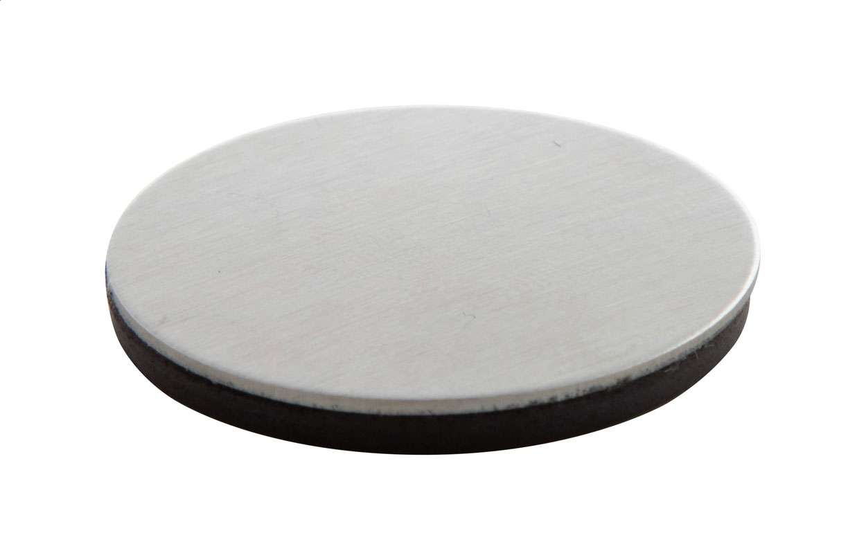 Magnet rotund pentru frigider cu suprafață din oțel inoxidabil.