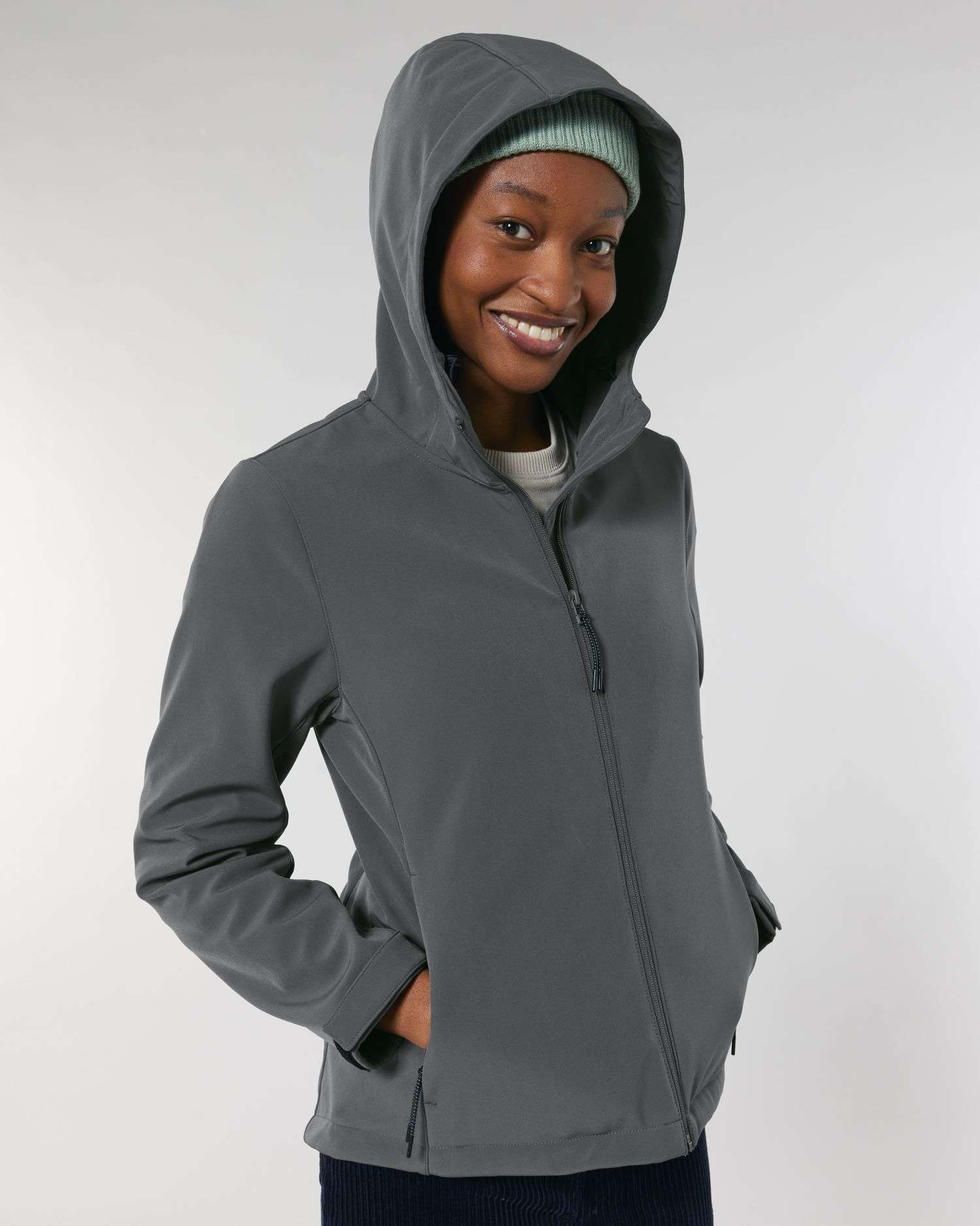 Jachetă tehnică 3 straturi cu glugă, buzunare reflectorizante și manșete reglabile. Rezistentă la ploaie și vânt, respirabilă.