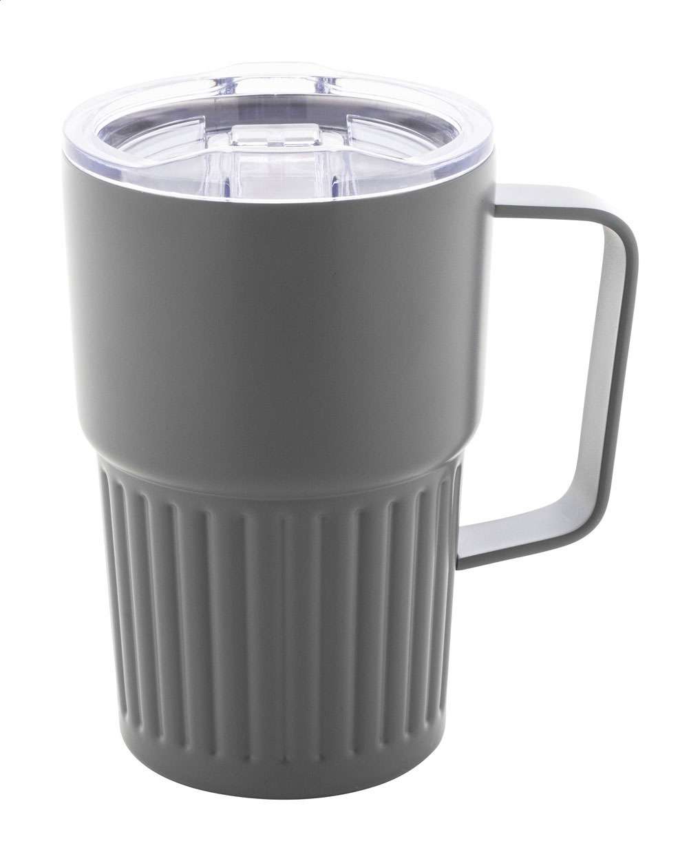 Cană termoizolată, din oțel inoxidabil reciclat, cu perete dublu, cu capac pentru băut din plastic ABS. 470 ml.