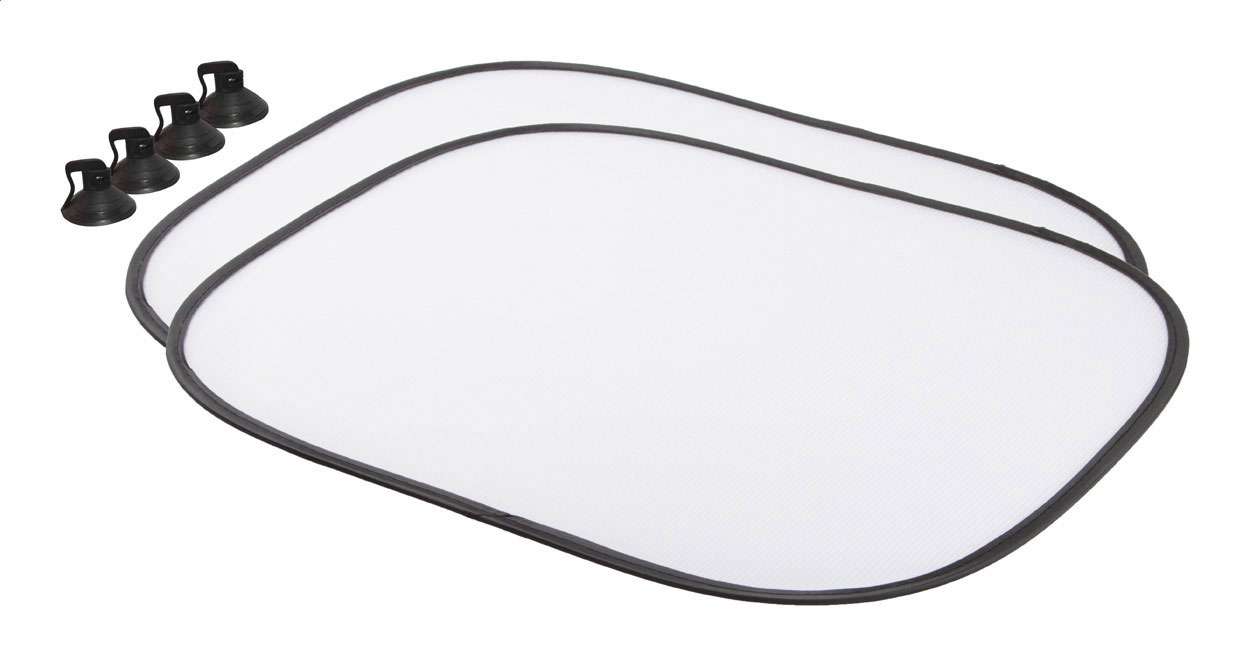 Parasolare auto, pliabile, pentru geamuri laterale(2 buc). Se livrează cu ventuze.