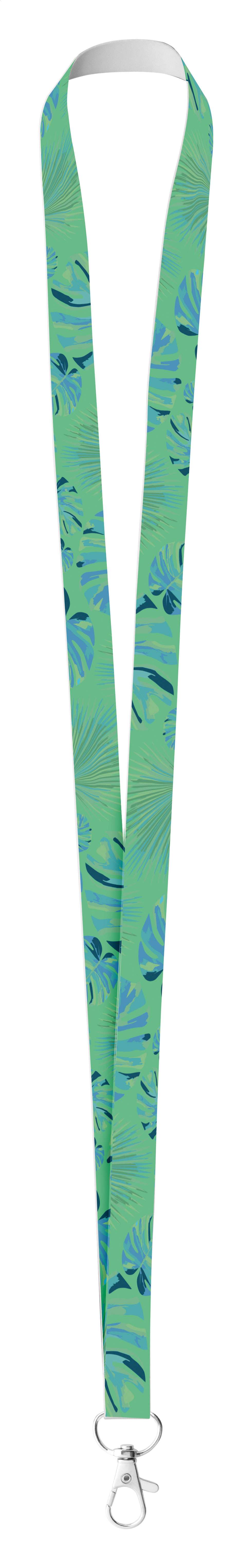 Lanyard din poliester de 15 mm lățime, cu carabină metalică. Prețul include personalizarea cu sublimare pe o parte. Cantitate minimă de comandă: 100 buc.