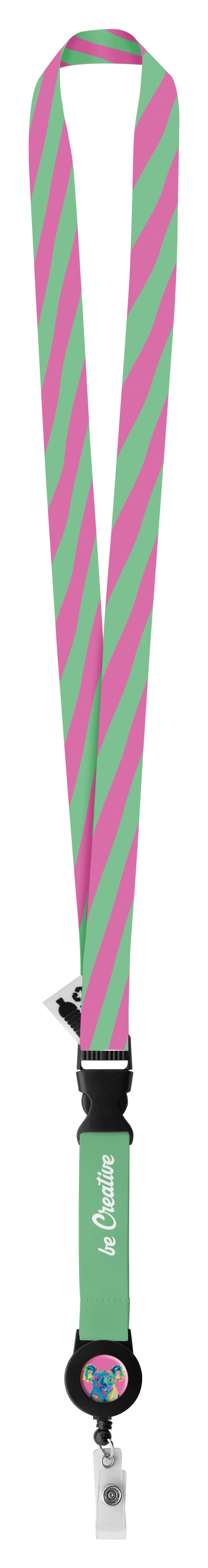 Lanyard din RPET, cu suport ecuson retractabil si detasabil. Pretul include sublimarea pe ambele fete. Cantitate minima de comanda 100 buc.