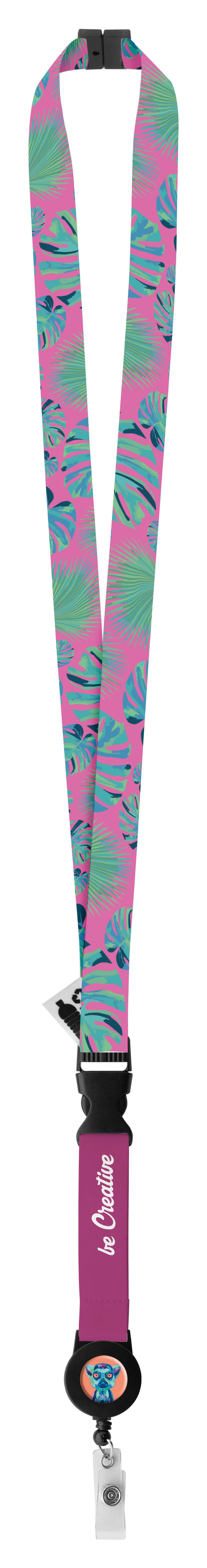 Lanyard din RPET, cu suport ecuson retractabil si detasabil si cu catarama de siguranta. Pretul include sublimarea pe ambele fete. Cantitate minima de comanda 100 buc.