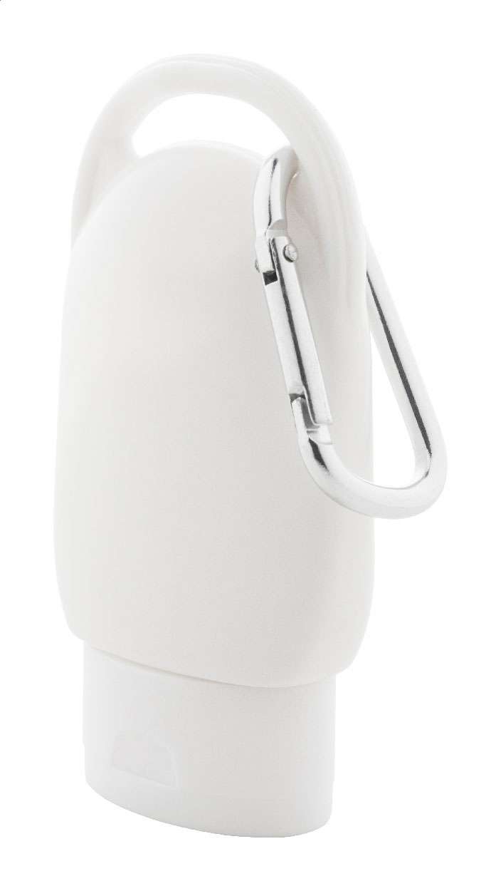 Loțiune de protecție solară în recipient de plastic, cu capac de culoare asortată și carabină. Protectie SPF30, 30 ml.