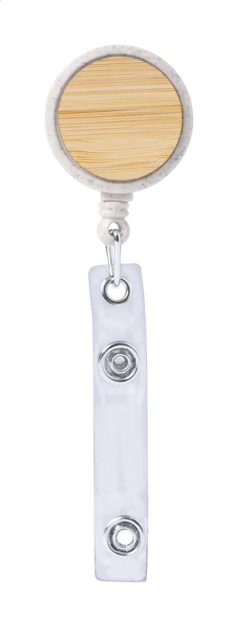 Suport lanyard ecologic, din plastic din paie de grâu și bambus, cu închidere prin presare, șnur telescopic și clip metalic.