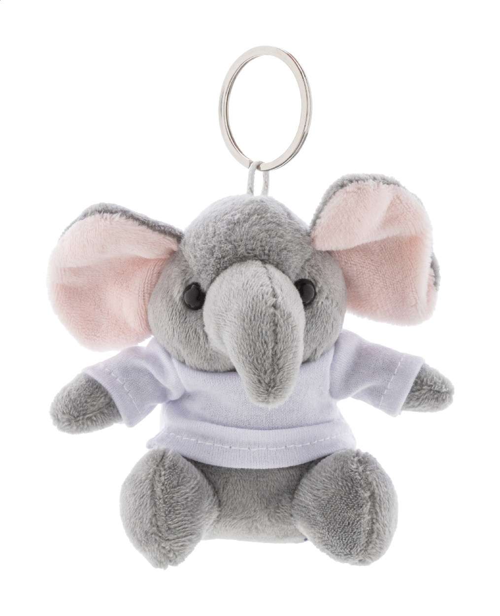 Breloc de pluș, în formă de elefant, cu tricou imprimabil.